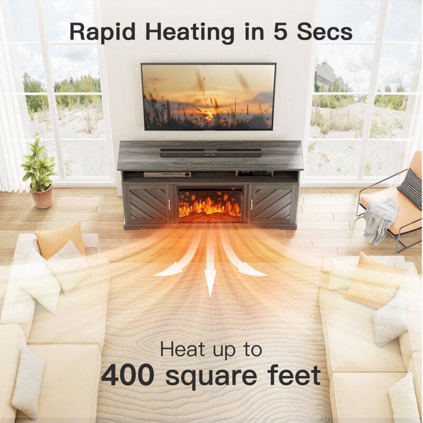 Aillie Farmhouse TV Stand For TVs Up To 70" With Electric Fireplace Included, Modern Entertainment Center, Media Console For TVs
